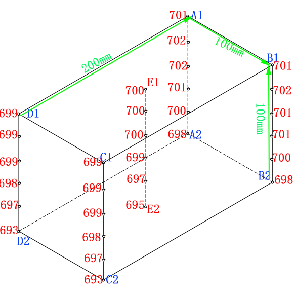溫場圖 | 在700℃恒溫時(shí)的溫場圖 A1BB2A2距離爐膛后墻的距離是5cm B1B2C2C1距離爐膛右墻的距離是5cm C1C2D2D1是爐門方向,距離爐門的距離是5cm A1A2D2D1距離爐膛左墻的距離是5cm A1B1C1D1距離爐頂?shù)木嚯x是5cm A2B2C2D2距離爐低的距離是5cm E1、E2分別是上、下面的中點(diǎn) 此數(shù)據(jù)僅代表的測試的這一臺(tái),不代表該型號(hào)的其它爐子,每臺(tái)爐子在裝配生產(chǎn)的過程中會(huì)有微小差異,溫場也會(huì)有微小的差異 | ||||